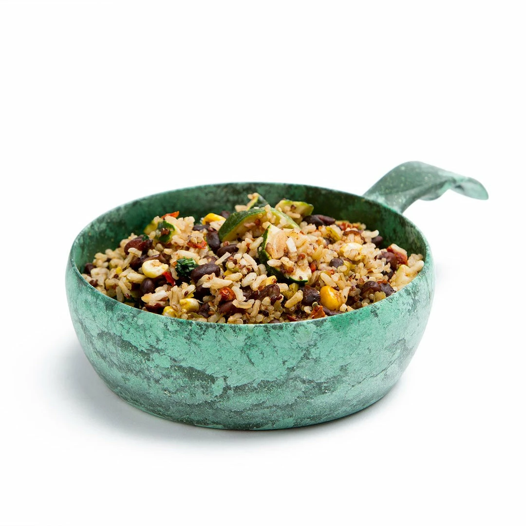 - A hearty stew, with corn, beans, & squash, in a brown rice & quinoa base.