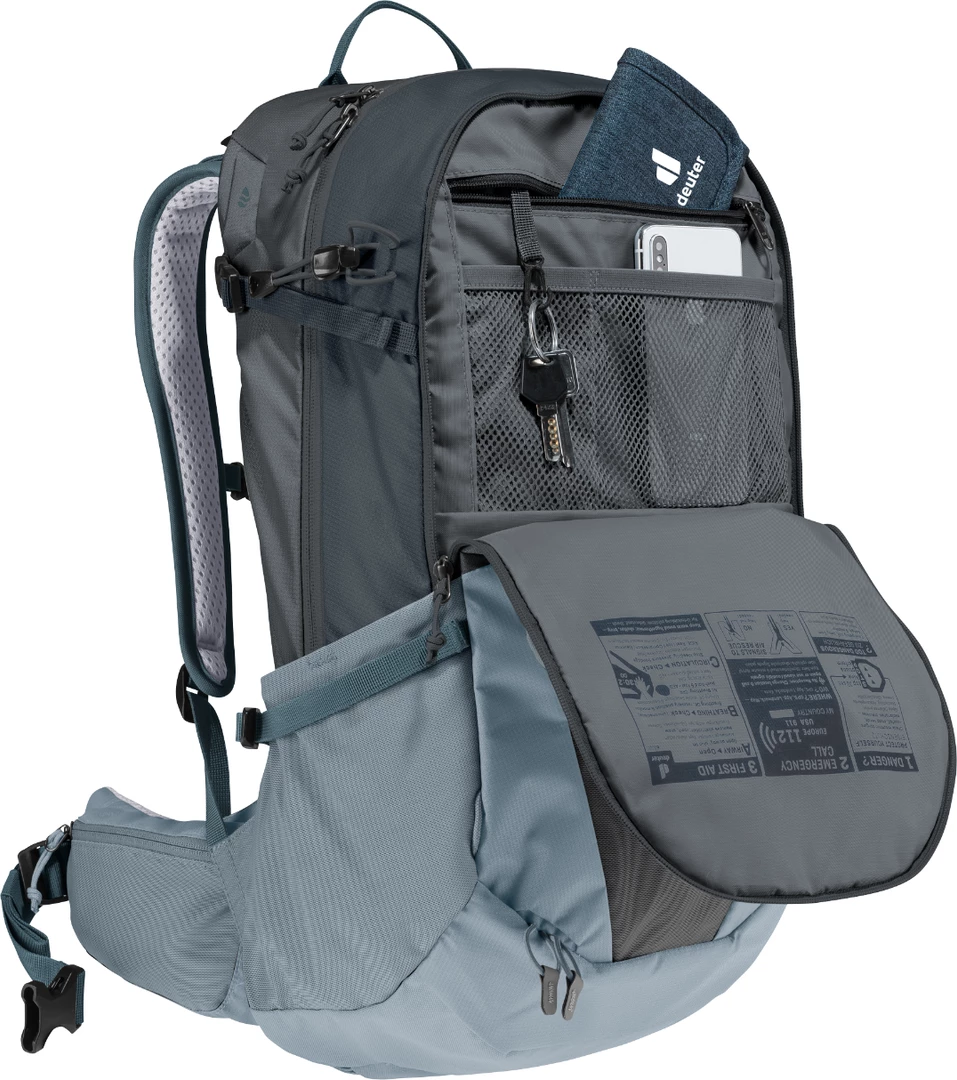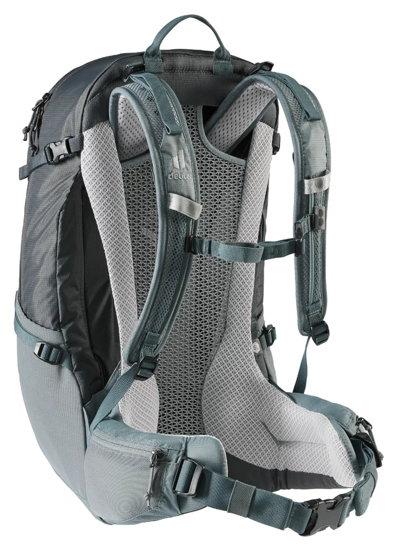 The lightweight, technical Futura SL hiking backpack is specifically designed for women. With a shorter back, narrower shoulder straps and conical shaped hip fins, the Futura SL creates a solid, secure fit around the back and hips. The new-style mesh on the Aircomfort back system creates maximum airflow across the back for athletic hiking. The stretch mesh front pocket is great for airing wet clothes on the move (after a quick dip in a mountain stream, for example).