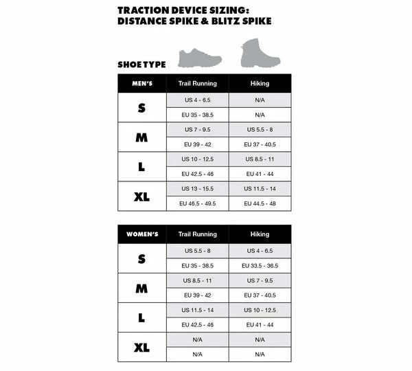 The Blitz Spike is our ultralight trail traction device at only 57 grams per device. Engineered for fast and light missions with ultimate packability, the Blitz Spike features 6 stainless steel spikes on the forefoot for superior strength and durability. Drawing from our extensive experience designing climbing crampons, the 6 forefoot spikes have an optimized 8mm length, designed to provide excellent engagement on snow and ice, with improved stability on rock when the trail ends and the scramble begins. The heel retention elastomer and webbing toe loop keeps the Blitz featherweight while providing a stable and secure fit.
