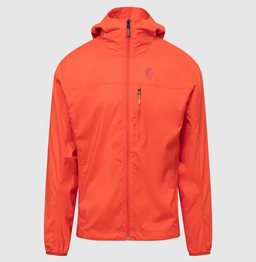 An ultralight softshell designed to shield weight-conscious climbers from ridgeline gusts and light weather, the Black Diamond Alpine Start Hoody features Schoeller stretch-woven fabric to provide highly breathable and highly packable weather resistance. A gusseted construction offers unrestricted freedom of movement, while the adjustable hood fits over a climbing helmet. The jacket also stuffs into its own chest pocket, which features an internal carabiner clip loop for attaching to your harness.