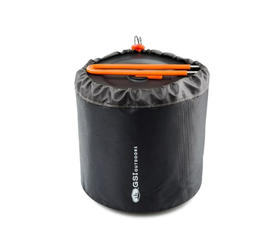 Built for maximum cooking efficiency, and designed to carry light and pack small, this is GSI’s highest performance two-person backpacking system. The rugged, hard-anodized aluminum 1.8L boiler is coated with durable, scratch-resistant PFOA-free Teflon® with Radiance Technology for superior non-stick performance, easy cleaning, and outstanding heat transfer. Next, hyper-conducting heatsink will speed cook times by 30% so you save fuel and time. The kit also includes all your eating gear. Nesting perfectly into the pot – with room for your fuel canister – are two 20oz wide-mouth mugs with insulated sleeves and Sip-It lids, two 20oz bowls, and a couple of Foons – our folding spork. The pot’s strainer lid makes draining easy, and the whole system fits into a carry bag that doubles as a camp sink.