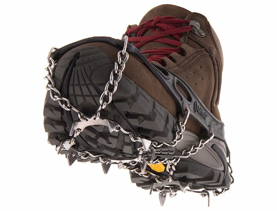 Lighter and tougher, the new MICROspikes®deliver unrivaled traction on icy winter trails. With stainless steel spikes and welded chains tough enough to handle any adventure, they are now designed with an integrated toe bale and reinforced eyelets, allowing for a 50% lower profile elastomer harness.