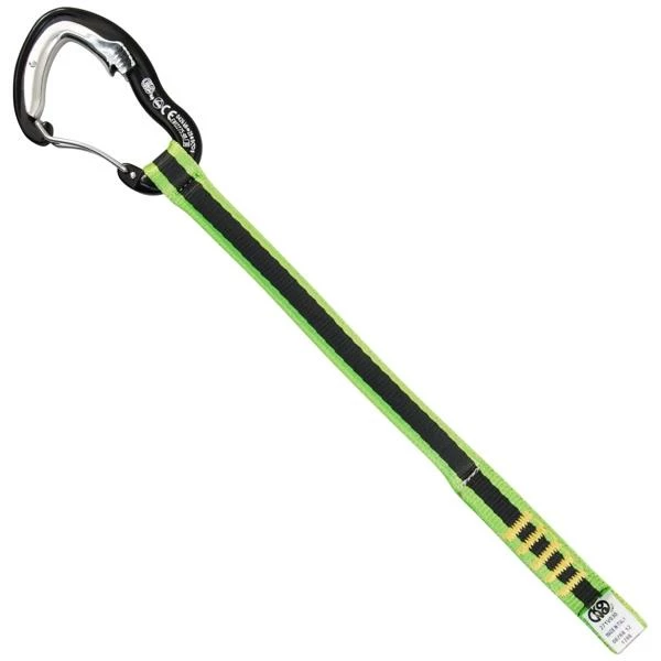 Self-closing carabiner with semi-rigid webbing: an aid to reach the most distant bolts!