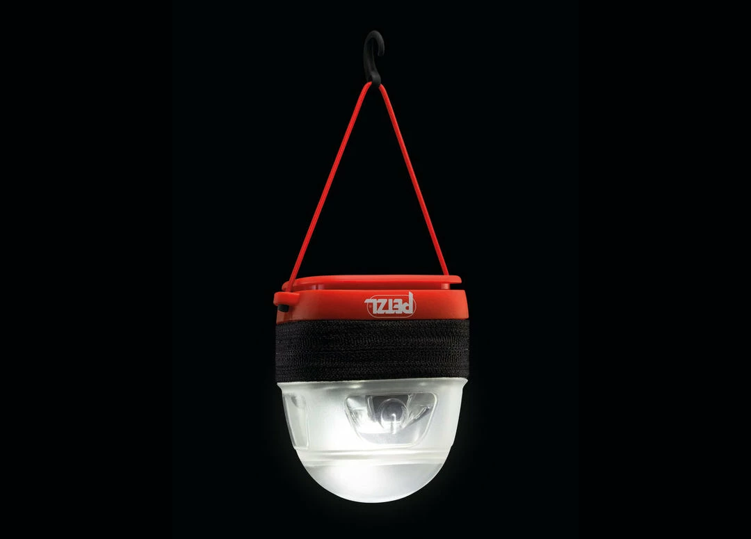 Protective carrying case for Petzl’s compact headlamps that diffuses light into lantern mode