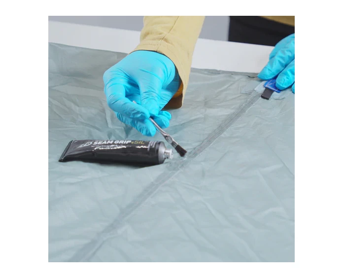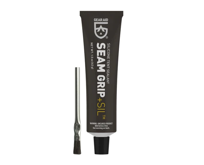 Seam sealing with Seam Grip SIL is the best way to keep moisture out when using a silnylon (silicone-nylon) tent. Previously known as SilNet, this clear sealant dries to a flexible rubber that works on all silicone treated gear including nylon tarps and ultralight backpacks. A single 1.5 oz tube can seal up to 24 ft of seams. Fast and easy to use, it’s also handy for pinhole repairs and small tears. When you need to waterproof a silnylon tent only a silicone sealant will work, because silicone will only adhere to silicone. So, treat gear right and seal out the weather with Seam Grip SIL.