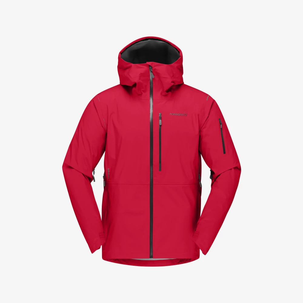 It has the shortest cut of the lofoten Gore-Tex jackets and has a regular, slightly shorter and boxier fit. The spacious napoleon chest pockets will not interfere with backpacks and the hand warming pockets will provide extra storage.