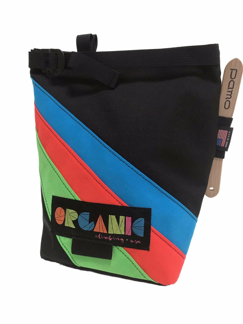 Our time-tested iconic bucket design provides a secure warehouse for your chalk supply. Burly 1000d nylon fabric is stiff, ensuring the Lunch Bag Bucket stays open while you’re bouldering. The bag seals with a ¾” hook and loop and then rolls down and clips like a boater’s dry bag securely closed with an indestructible metal buckle.