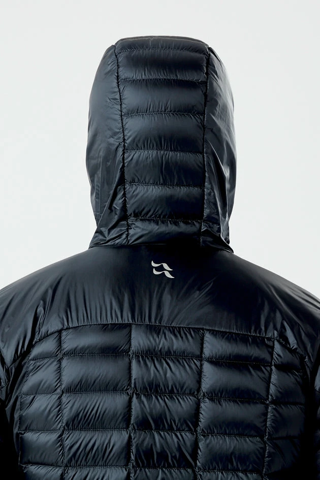 Ultralightweight and packable down filled mountain jacket with zoned stretch construction