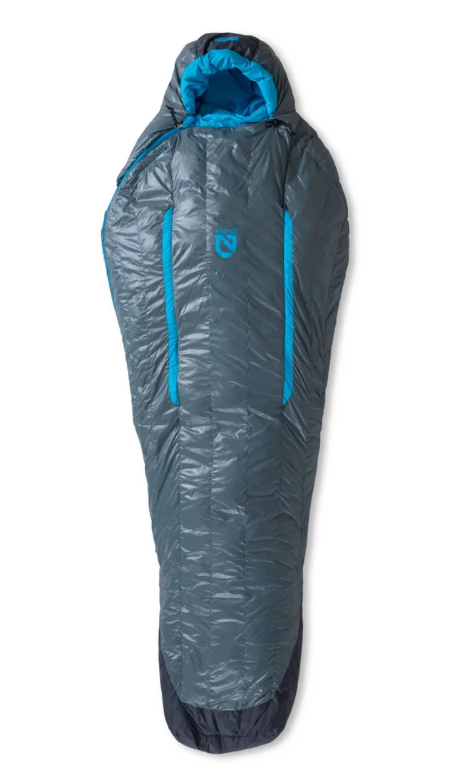Our flagship Thermo Gills™ allow you to regulate temperature without letting in drafts, deeply extending the useable temperature range. The waterproof/breathable footbox and hood protect from tent wall condensation. Our exceptionally packable 800 FP down is hydrophobic, PFC-free, and 100% Responsible Down Standard (RDS) certified. Top-shelf fabrics include a 20D nylon ripstop with DWR on the shell, an ultra-smooth 30D nylon taffeta lining, and a 40D OSMO™ nylon ripstop waterproof/breathable footbox.