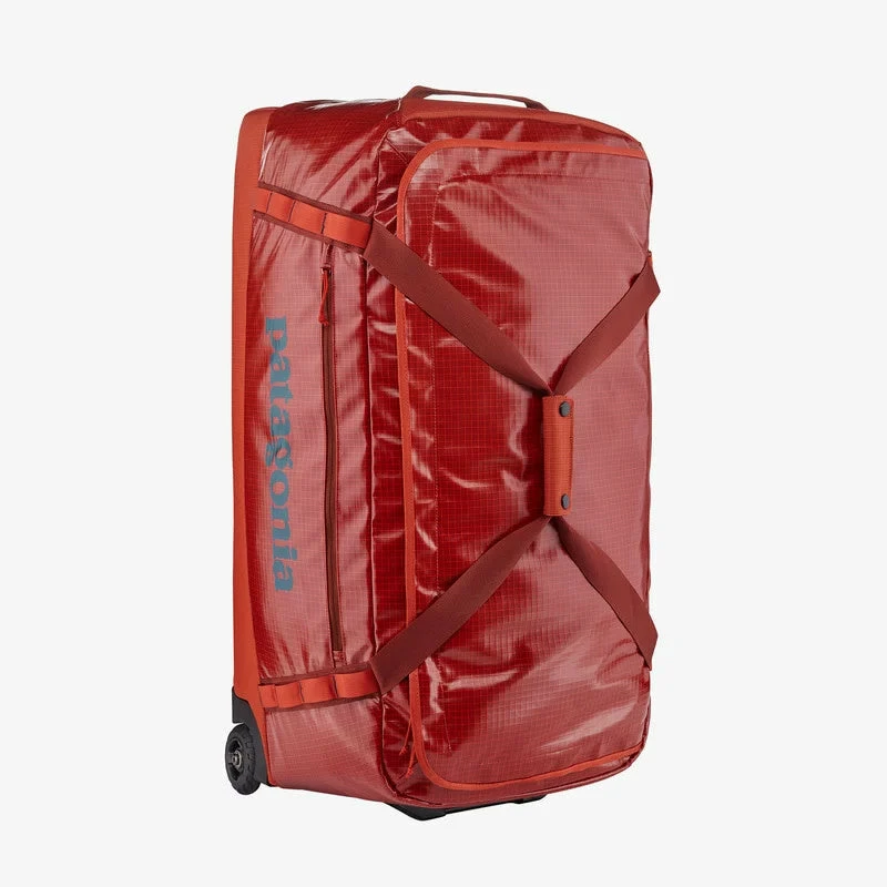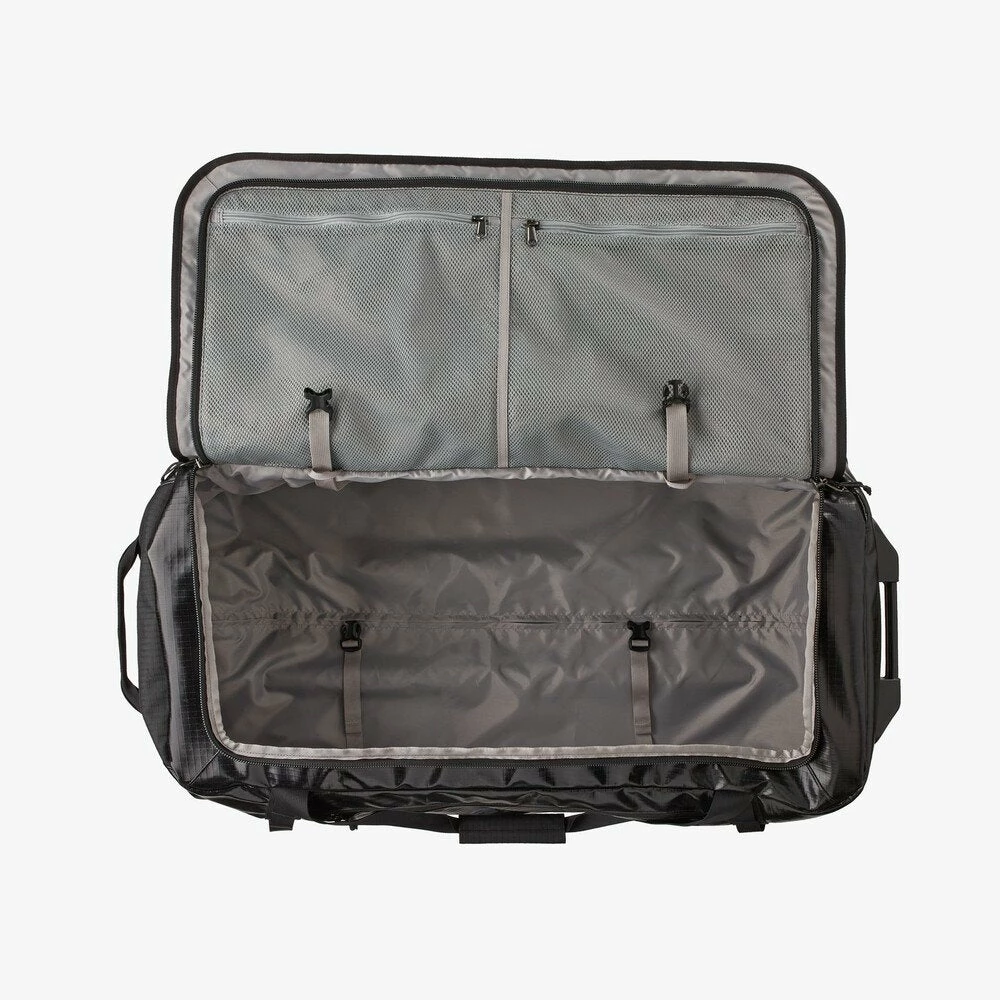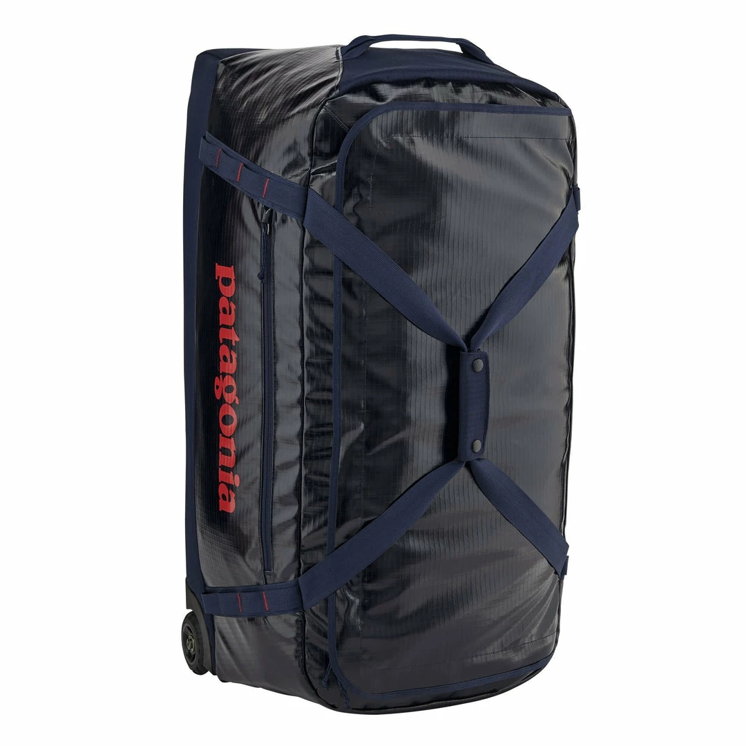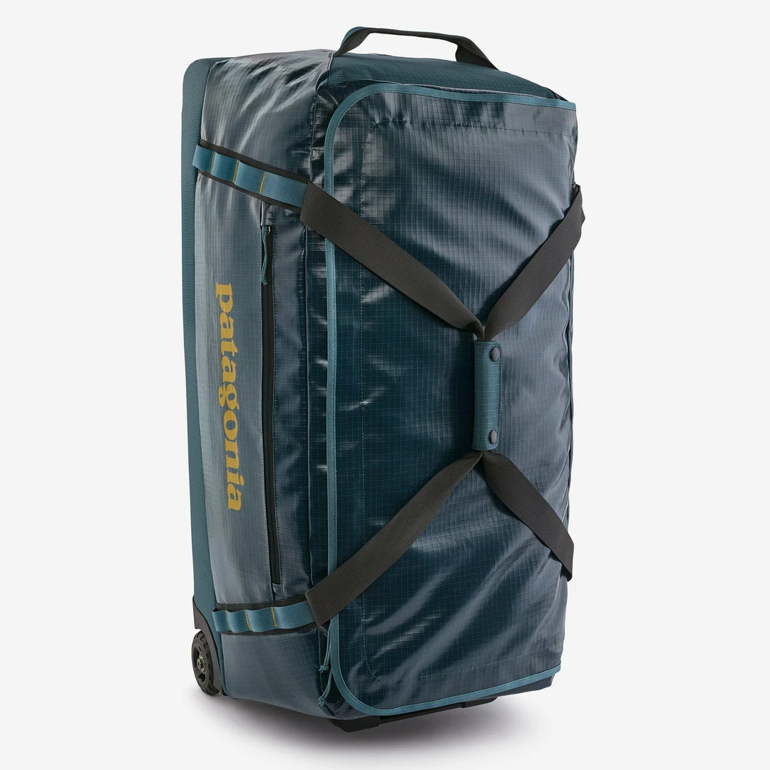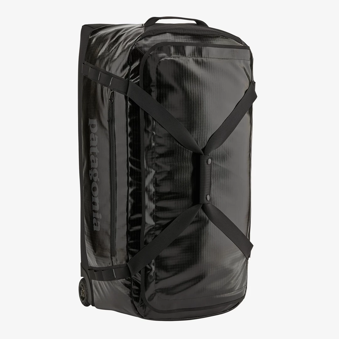 A highly weather-resistant gear hauler with sturdy wheels and a telescoping handle. Made with 100% recycled body fabric, lining and webbing.